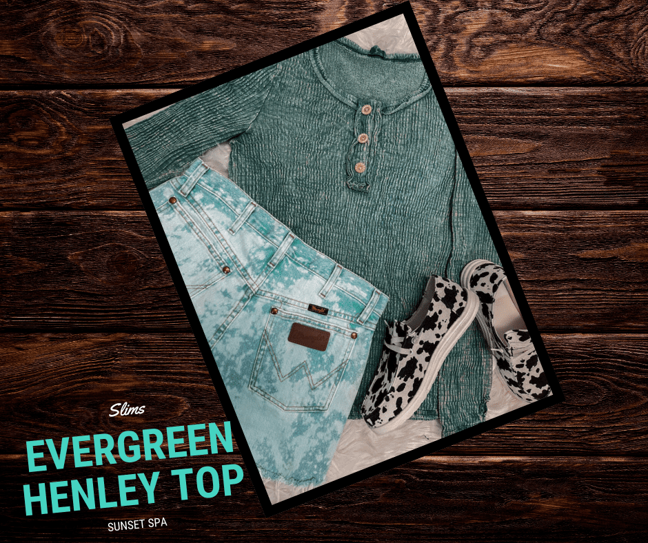 Meet your new everyday favorite. The Evergreen Henley Top features a soft, textured fabric with a relaxed fit that’s easy, flattering, and effortlessly cool. Designed with a classic henley neckline and button detail, this long sleeve brings laid-back vibes with just enough style to feel put together.