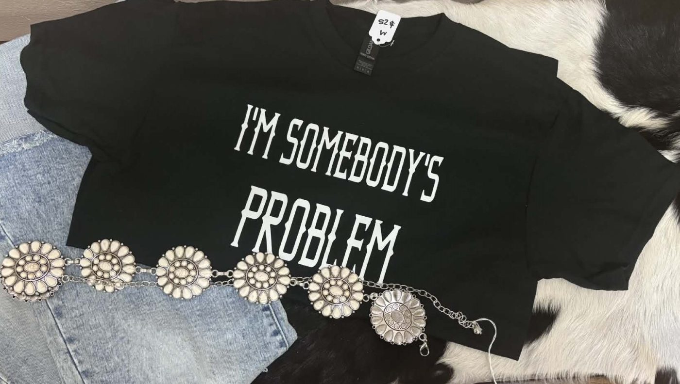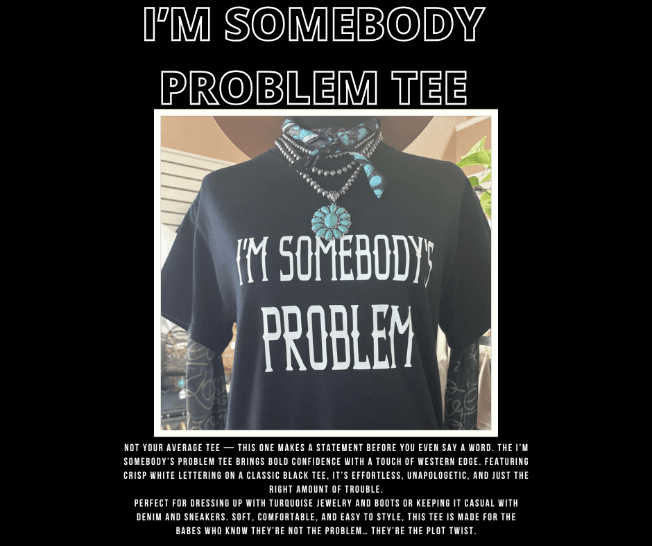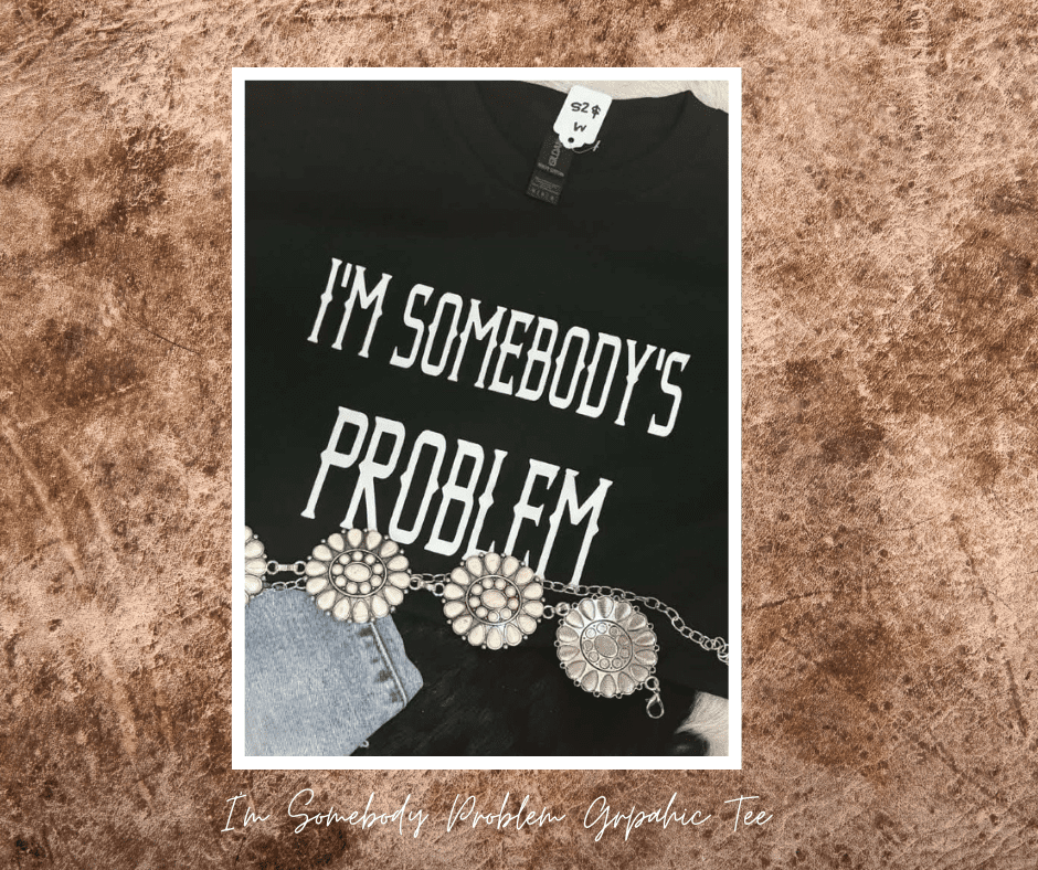 Not your average tee — this one makes a statement before you even say a word. The I’m Somebody’s Problem Tee brings bold confidence with a touch of western edge. Featuring crisp white lettering on a classic black tee, it’s effortless, unapologetic, and just the right amount of trouble.