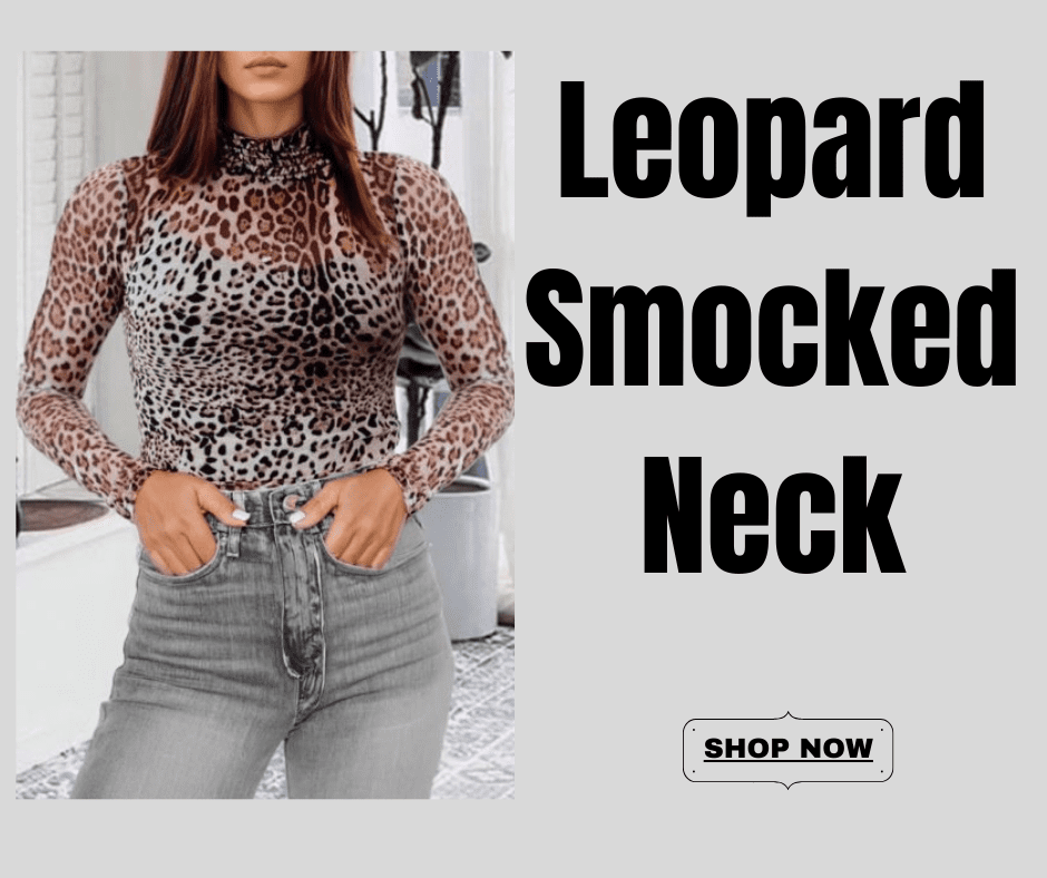 Leopard Smocked Neck – Product Description