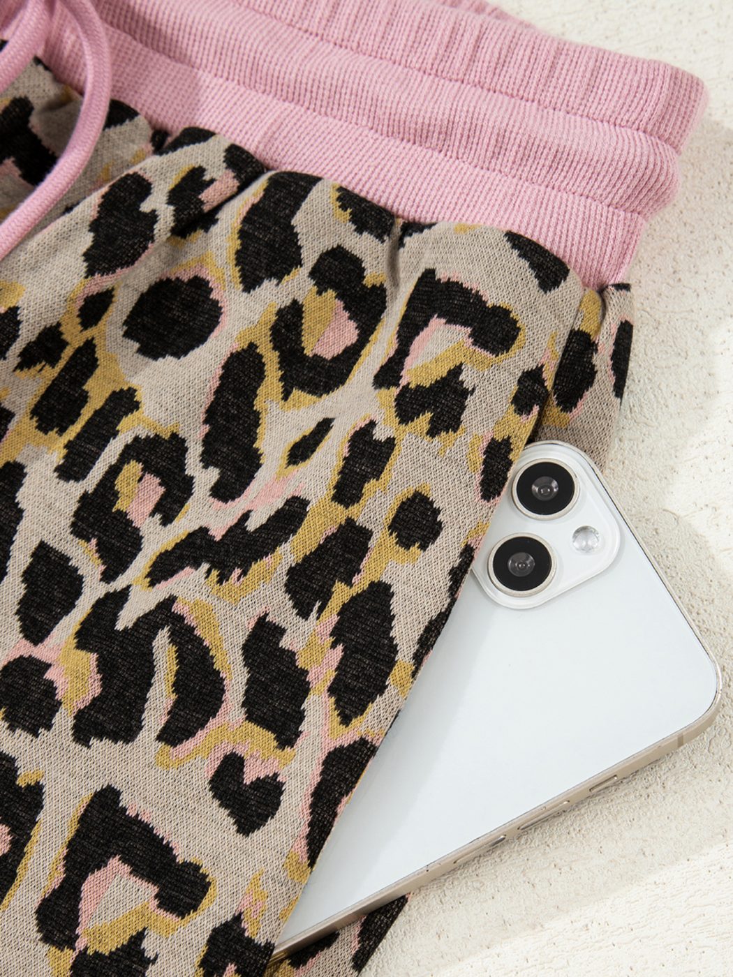 • Leopard print with pink contrast ribbed trim